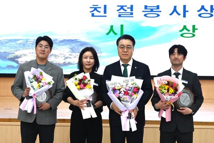 ÀÌ¾î¼ ÁøÇàµÈ ½Ã»ó½Ä¿¡¼´Â °ü±¤Ã¼À°½Ç ¹é´ëÁß ÁÖ¹«°ü, µµ½Ã°ú ¼¹Î¼Ö ÁÖ¹«°ü, ȼøÀ¾ÇàÁ¤º¹Áö¼¾ÅÍ À̸íö ÁÖ¹«°üÀÌ °ø¹«¿øÀ¸·Î¼ ¸ÃÀº ¹Ù Á÷¹«¸¦ ¼º½ÇÈ÷ ¼öÇàÇϰí, Àû±ØÀûÀ̸ç Ä£ÀýÇÑ ÀÚ¼¼·Î ÃÖ»óÀÇ ¹Î¿ø ÇàÁ¤ ¼ºñ½º¸¦ Á¦°øÇÑ °ø·Î¸¦ ÀÎÁ¤¹Þ¾Æ Ä£Àý °ø¹«¿ø ǥâÀ» ¼ö»óÇß´Ù.