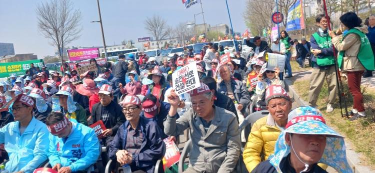 ÇÑÆí À̳¯ ½ÃÀ§¿¡´Â µ¿º¹¸é ÁֹλӸ¸ ¾Æ´Ï¶ó ¼ÛÀü¼±·Î Áõ¼³ÀÌ ¿¹°íµÈ Àü±¹ °¢ÁöÀÇ ÁֹεéÀÌ ¸ð¿© ¹Ý´ëÀÇ ¸ñ¼Ò¸®¸¦ ³ô¿´´Ù.