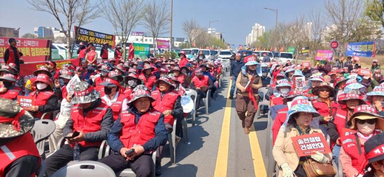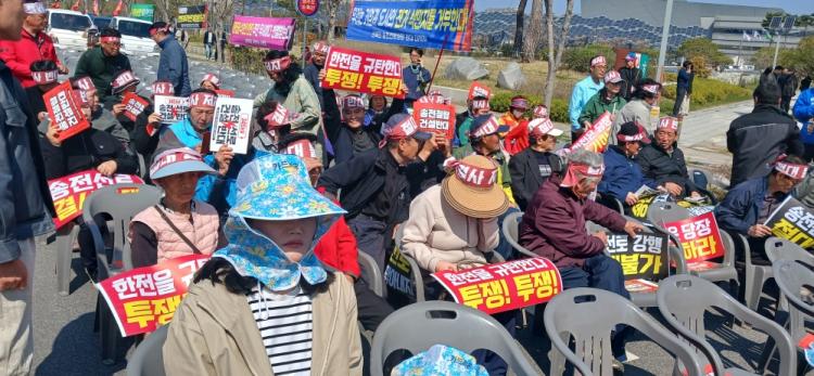 µ¿º¹¸é ÁֹεéÀÌ 2ÀÏ ³ªÁÖ ºû°¡¶÷Çõ½Åµµ½Ã¿¡ À§Ä¡ÇÑ Çѱ¹Àü·Â°ø»ç(ÀÌÇÏ ÇÑÀü) º»»ç ¾Õ¿¡ Áý°áÇØ ÇÑÀüÀÌ ÃßÁø ÁßÀÎ 154kV±Þ ȼø~°î¼º ¼ÛÀü¼±·Î ½Å¼³ »ç¾÷ÀÇ Àü¸é Áß´ÜÀ» ¿ä±¸ÇÏ¸ç °·ÂÇÑ ¹Ý´ë Àǻ縦 Ç¥¸íÇß´Ù.