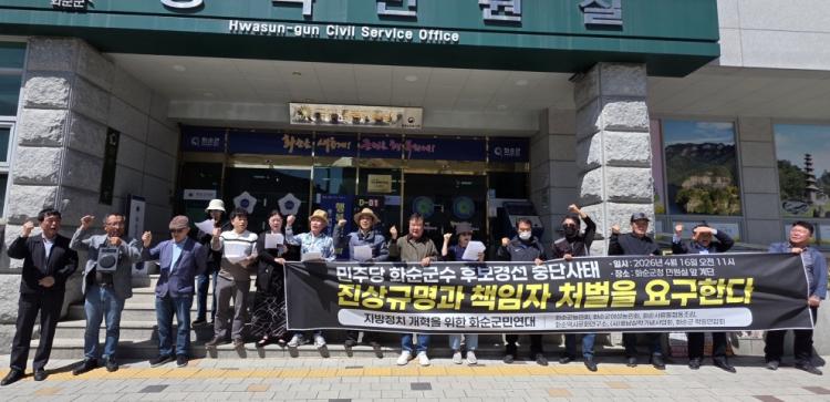 ȼøÁö¿ª ½Ã¹Î¡¤»çȸ´ÜüµéÀÌ 16ÀÏ È¼ø±ºÀÇȸ °Ç¹° ¾Õ¿¡¼ ´õºÒ¾î¹ÎÁÖ´ç ȼø±º¼ö Èĺ¸ °æ¼± ÀáÁ¤ Áß´Ü »çÅÂ¿Í °ü·ÃÇØ öÀúÇÑ Áø»ó±Ô¸í°ú Ã¥ÀÓÀÚ Ã³¹úÀ» Ã˱¸ÇÏ´Â ¼º¸í¼¸¦ ¹ßÇ¥Çß´Ù.