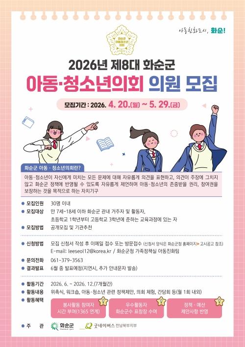 ȼø±º(±º¼ö ±¸º¹±Ô)Àº ¡®2026³â Á¦8´ë ȼø±º ¾Æµ¿¡¤Ã»¼Ò³âÀÇȸ¡¯ ÀÇ¿ø 30¸íÀ» 4¿ù 20ÀϺÎÅÍ 5¿ù 29ÀϱîÁö °ø°³ ¸ðÁýÇÑ´Ù°í ¹àÇû´Ù.