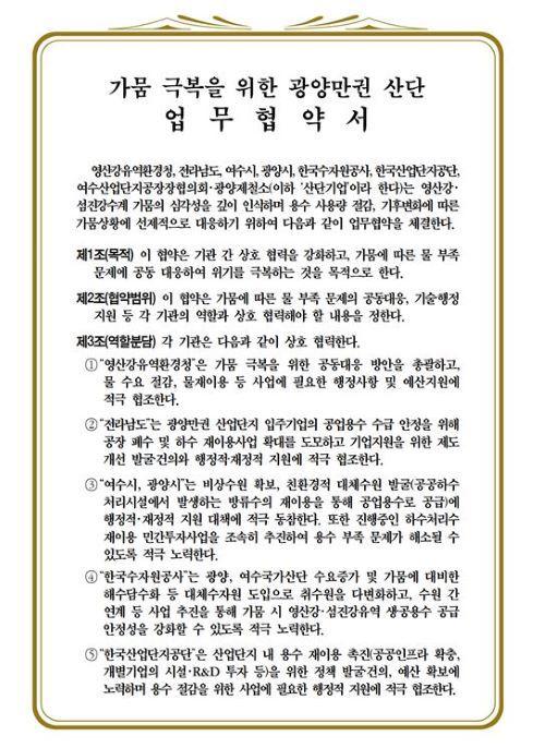 ¿µ»ê°À¯¿ªÈ¯°æÃ»À» ºñ·ÔÇÑ Àü¶ó³²µµ(¿©¼ö¡¤±¤¾ç½Ã Æ÷ÇÔ)´Â ¹° ¼ö¿ä Àý°¨, ºñ»ó¼ö¿ø È®º¸, ģȯ°æÀû ´ëü¼ö¿ø ¹ß±¼ µî ±¤¾ç¸¸±Ç »ê¾÷´ÜÁö ÀÔÁÖ±â¾÷ÀÇ °ø¾÷¿ë¼ö ¼ö±Þ¾ÈÁ¤¿¡ ÇÊ¿äÇÑ ÇàÁ¤»çÇ× ¹× ¿¹»êÁö¿ø¿¡ Àû±Ø ÇùÁ¶ÇÒ °èȹÀÌ´Ù.